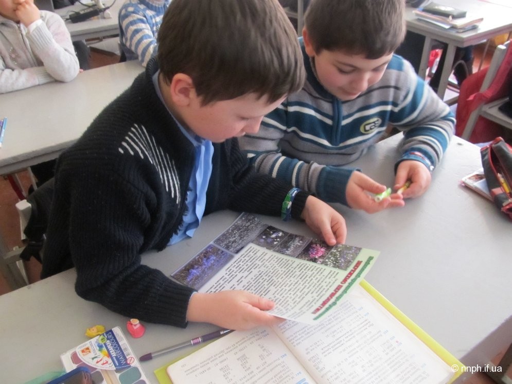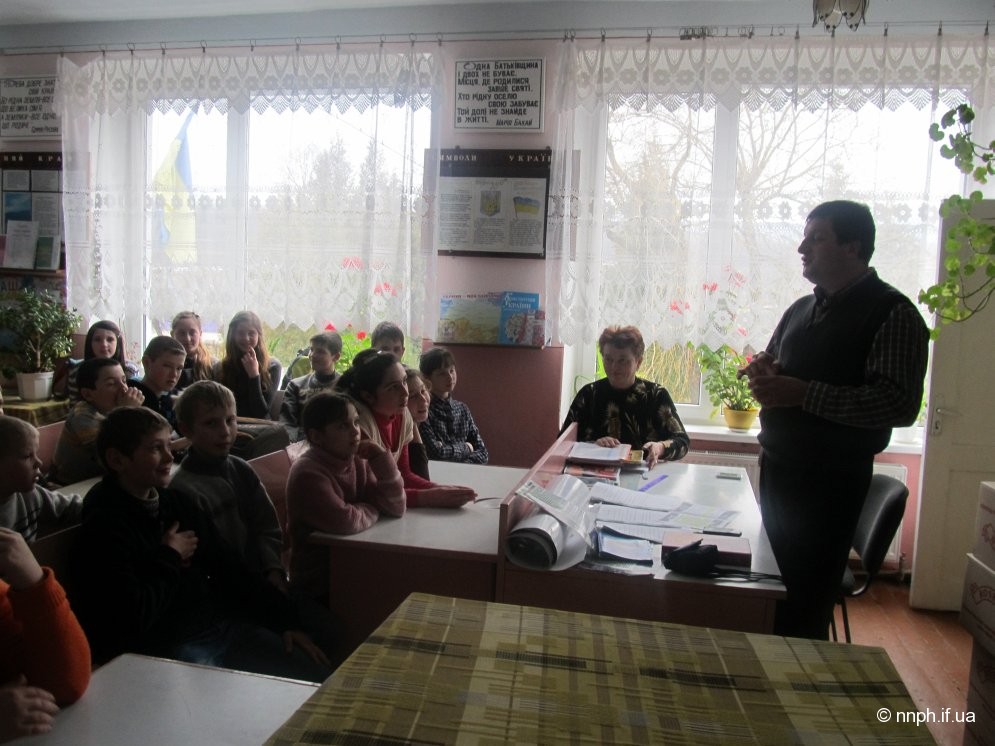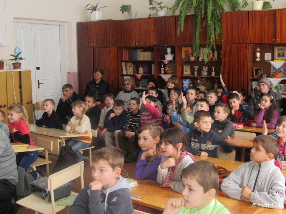 На завершення еколекторію учням були вручені листівки “Збережемо першоцвіти”, календарі НПП “Гуцульщина”, а також різну літературу.