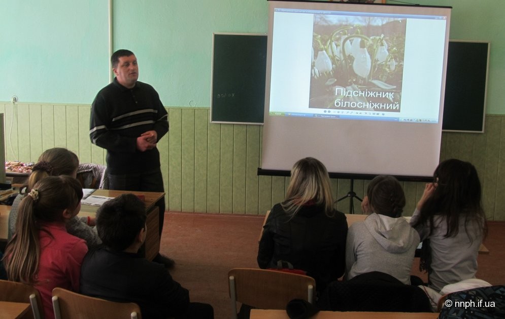 Про ранньоквітучі види — підсніжник білосніжний, шафран Гейфелів, білоцвіт весняний, примула дволиста, анемона дібровна, медунка звичайна цікаво та доступно розповідав Ігор Фенчук. Всі види першоцвітів, про які йшлося, були презентовані за допомогою мультимедійної техніки. Та все ж таки наголос був зроблений на тих видах, які зустрічаються на території Парку і занесені до ЧКУ.