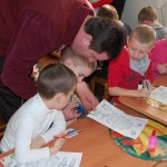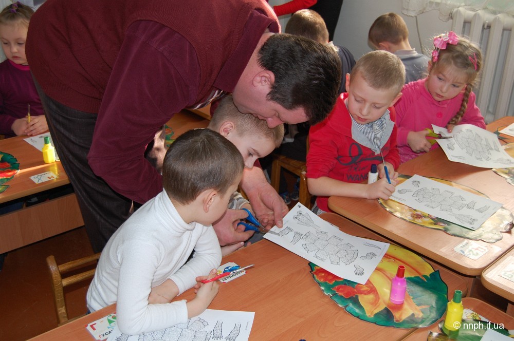 Малеча дуже уважно слухала і допомагала: розгадували загадки, розповідали цікаві історії. Потім дівчатка і хлопчики із задоволенням вирізали черепаху з паперу, розфарбовували і склеювали іграшки.
