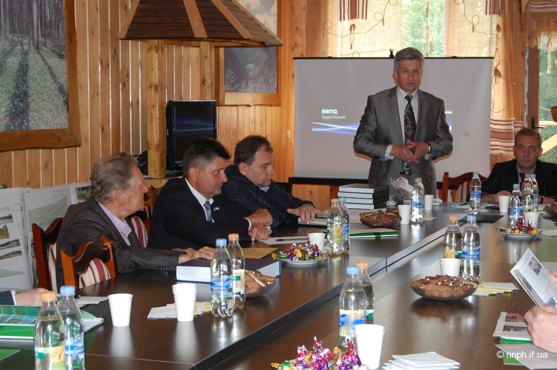 Інформацію про стан впровадження проекту «Збереження Карпатських пралісів» в НПП «Гуцульщина» та про стан виготовлення правовстановлюючих документів на землю НПП «Гуцульщина» надав заступник директора парку з наукової роботи, заступник голови НТР НПП «Гуцульщина», кандидат біологічних наук Юрій Стефурак.