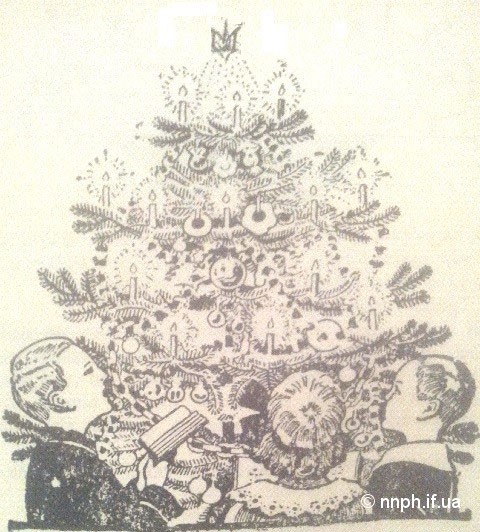 Тут ялинку гарно прибрали золотими та срібними оріхами, фігами, яблоками та цукерками, а до галузок попричіплювали гарні папірці та свічечки. А коли настав Святий Вечір, на ялинці запалено свічечки. Ялинка вся сіяла з радости й утіхи. Такою гарною не була вона ще ніколи до тепер. Аж ось до світлиці вбігли діти і радість ялинки тревала недовго. Ще свічечки не догоріли до останка, а вже діти їх погасили. Далі почали з ялинки здіймати прикраси.