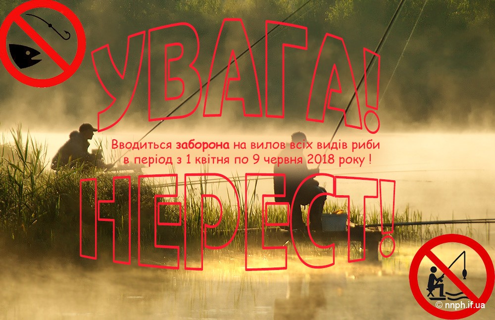 Згідно Наказу Держрибагентства України «Про заходи щодо встановлення весняно-літньої заборони на лов водних біоресурсів у рибогосподарських водних об’єктах України в 2018 році», з метою охорони водних біоресурсів в період їх природнього відтворення в рибогосподарських водних об’єктах, вводиться заборона на вилов всіх видів риби в період з 1 квітня по 9 червня 2018 року.