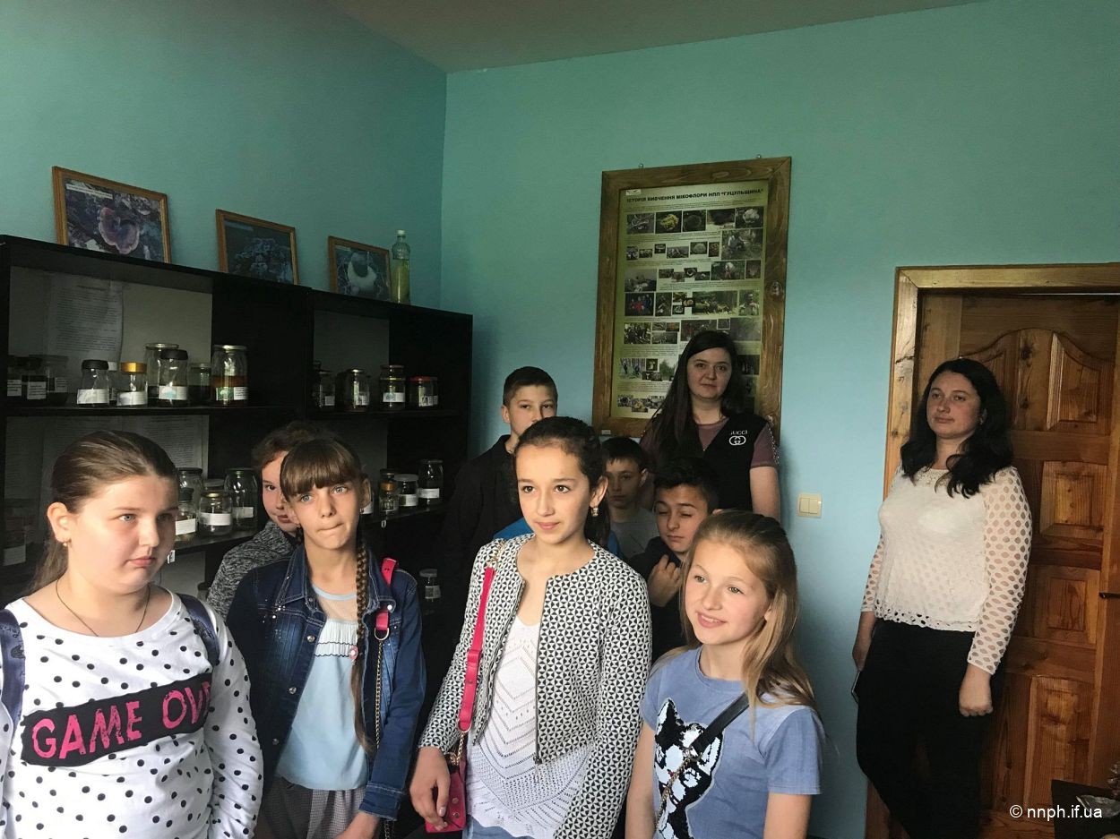Діти завітали до науково-просвітницького центру НПП «Гуцульщина», де прослухали цікаву розповідь про різноманіття рослинного і тваринного світу Парку та його охорону. А також оглянули лабораторію екологічного моніторингу, помандрували кімнатами-музеями НПЦ: мікології, геології, дендрології, орнітології, ентомології та ін. Особливо цікавим для дітей стало відвідання кімнати бджільництва.