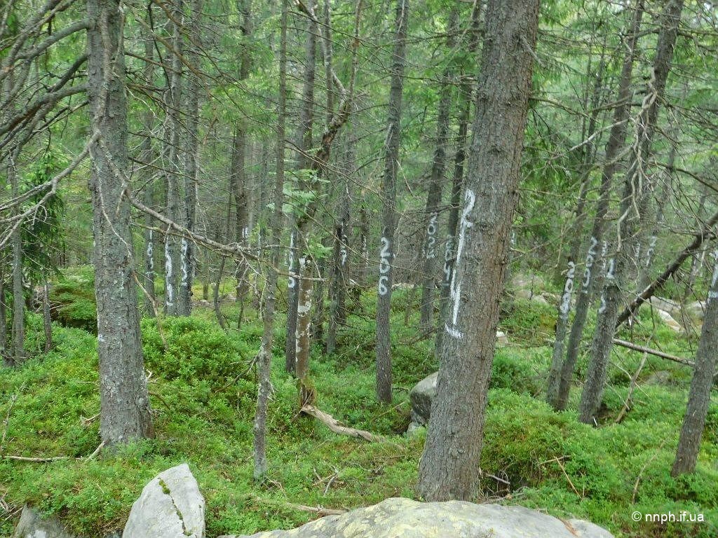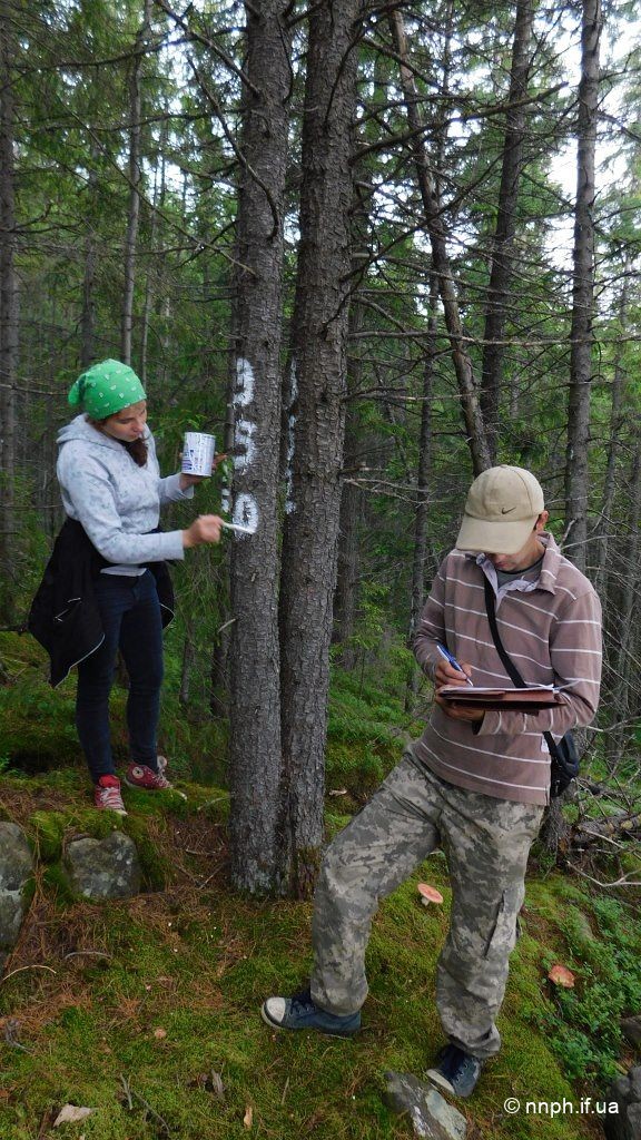 Науковцями науково-дослідного відділу НПП «Гуцульщина» проведено другу інвентаризацію деревостану, підросту, живого надґрунтового покриву та мертвої деревини на постійній пробній площі у смереково-кедровому деревостані на західному схилі г. Грегіт в Космацькому лісництві. Попередня інвентаризація була 2015 р.