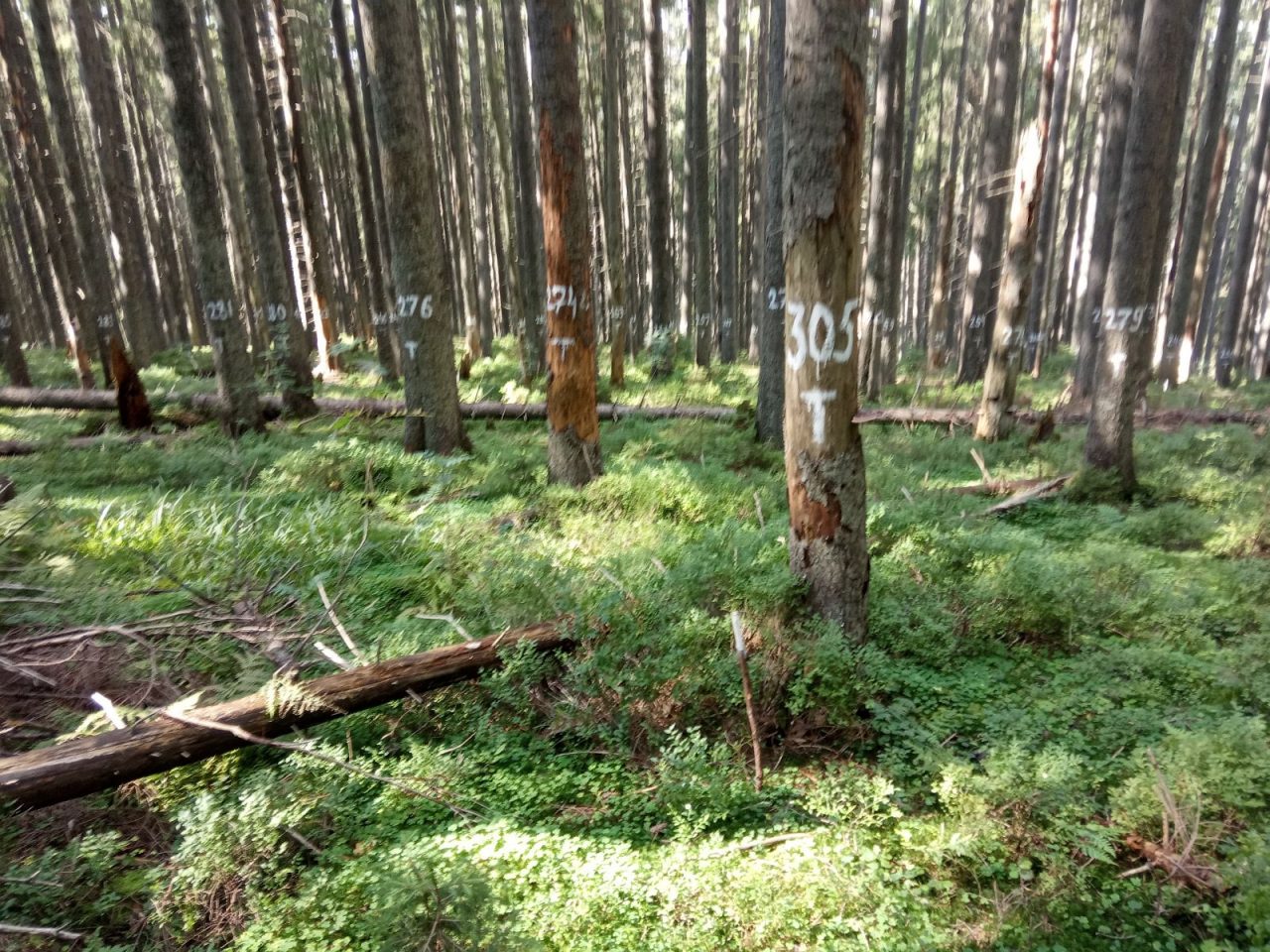 У чистих бучинах (ППП-2) осінній покрив лісових трав зовсім бідний – до 20%, тут ще де-не-де можна побачити ожику гайову, підмаренник пахучий та зеленчук жовтий. На ППП-3 у похідному ялиннику кількість видів дещо зменшилася, як і проективне покриття (60%). Проте тепла осінь у добре освітлених куртинах дозволяє вегетувати більш ніж 30 природним і бур’яновим видам, таким, як: молочай мигдалевидний, шавлія клейка, суниця лісова, яглиця звичайна, три види папоротей тощо.