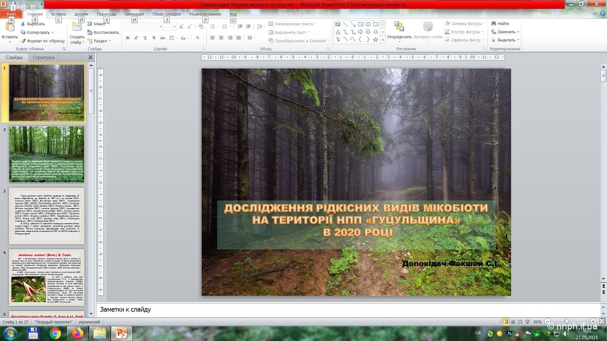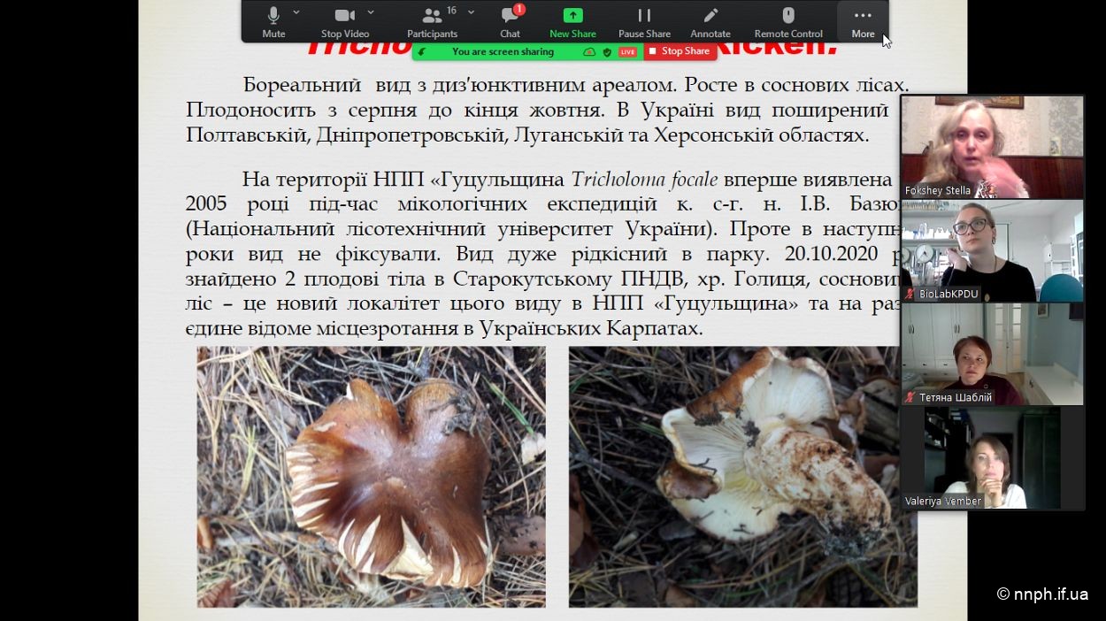 Фокшей С.І. представила дослідження про вивчення та охорону рідкісних видів макроміцетів на території НПП «Гуцульщина».